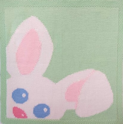 Snuggles guaranteed with this knitted baby blanket! Sweet Bunny baby peeks out from the corner making this a charming blanket. Great for girls or boys and is sure to be a memorable favorite. The pattern is knitted from a chart using simple intarsia technique, suitable for a patience beginner and fun for a more experienced knitter. Color and yarn choices are up to you. Since it is knitted from a graph, make it smaller - make it larger depending on your needle size and yarn!