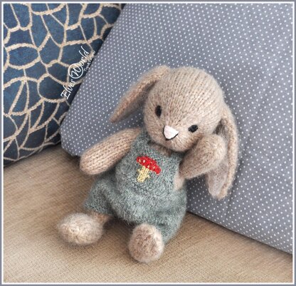 Toy Clothes Knitting Pattern: cute dungarees and beret for little baby bunny.