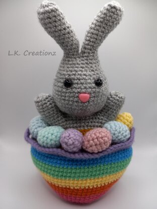 This pattern contains instructions to make your very own bunny in an Easter basket. Very little assembly required on this pattern. The basket and bunny is worked from the bottom up to the top in one piece. LOTS of pictures included to help difficult steps and special stitches.