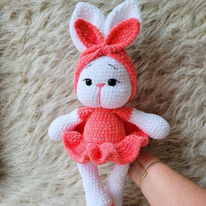 Crochet Plush Baby Amigurumi Bunny in Pink Dress PDF.