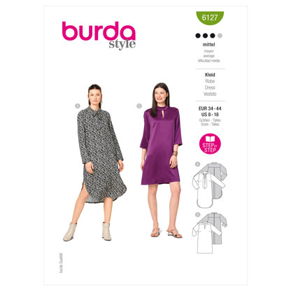 Burda Style Misses' Dress B6127 - Paper Pattern, Size 8-18 is a Intermediate Sewing pattern by Burda Style, available as a Paper Pattern and includes instructions in English, French, Spanish. Super fun to make, this pattern could be your next masterpiece!