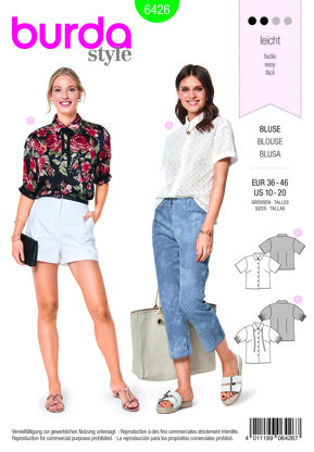 Burda Style Misses Fancy Summer Blouses B6426 - Paper Pattern, Size 10-20 is a Beginner Sewing pattern by Burda Style, available as a Paper Pattern and includes instructions in English, French, Spanish. Super fun to make, this pattern could be your next masterpiece!