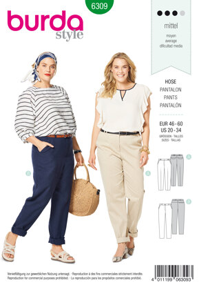 Burda Style Women's Back Elastic Pants B6309 - Paper Pattern, Size 20-34 is a Intermediate Sewing pattern by Burda Style, available as a Paper Pattern and includes instructions in English, French, Spanish. Super fun to make, this pattern could be your next masterpiece!
