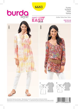 Burda Women's Tunic Sewing Pattern B6683 - Paper Pattern, Size 10-22 is a Beginner Sewing pattern by Burda Style, available as a Paper Pattern and includes instructions in English, French, Spanish. Super fun to make, this pattern could be your next masterpiece!