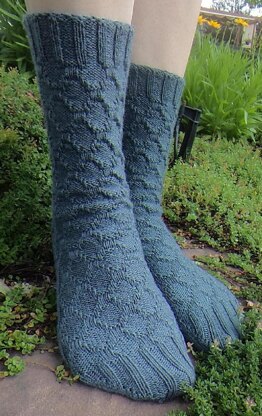 A textured sock worked with only knits and purls, and suitable for both men and women. Four sizes (S, M, L, & XL) are charted so you can make these socks for almost anyone.