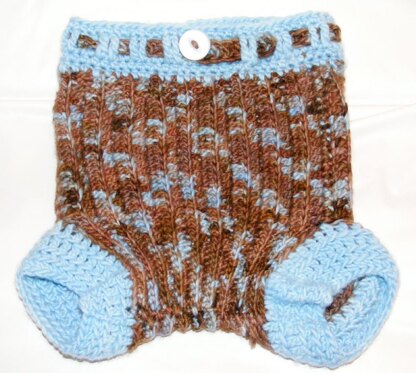 With its extra super stretchy back-loop-only construction, and its no-dig leg cuffs design, this wool soaker truly is a super fit for any baby. The back-loop-only construction allows the soaker to stretch to fit many sizes of babies, meaning that you will only need to make two sizes, instead of three or four. And unlike patterns that have leg cuffs which join on the sides of a row, these back-loop-only leg cuffs are worked straight off actual stitches and do not pull at the point of joining. The buttoned belt closure keeps my toddler’s cute little hands from unfastening and pulling it off, too. Both it and a tie closure pattern have been included so that you may choose which is best for your baby. Plus, this pattern is easy to crochet and super cute on those adorable little cloth-diapered bums!