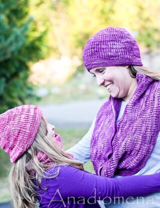 | One size only: | Infinity Scarf: 8.5” x 44”/21.5 x 112 cm-- Hat: to fit a head 21-23”/53-58.5 cm in circumference. |