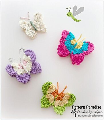 Usher in spring with these colorful, bright and fun butterflies. They will look so adorable on so many things or just hang them from string in your window, I think they will make you smile. You can work them in any type, size yarn and an appropriate hook size, so have fun, experiment and bust that stash!