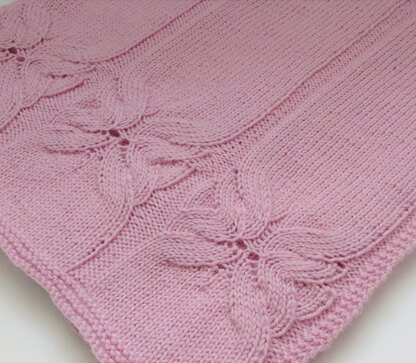 This Japanese inspired blanket features an extra wide rib pattern with a row of butterflies at each end. Most of the knitting is simple with the textured butterfly lace pattern to add interest.