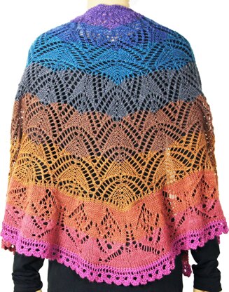 When I first got my hands on the gorgeous shawl-striping yarn by Caterpillargreen Yarns, I knit it into the top-down triangular shawl that it is meant to be. But after that, my mind began to wonder – what would happen if I broke the rules and tried other shawl scapes for the yarn? Well, the yarn works just as wonderful as for triangular shawls! Butterfly in the Sunset is the second in a series of shawls using Caterpillargreen yarn for shawls that are not triangular. The pattern is written out as well as charted.