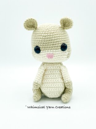 Butters uses a 4 mm hook and Loops and Threads Impeccable yarn. When using the recommended hook size, yarn and yarn under (x stitch), he measures 6.5 inches/16.5 centimeters tall.