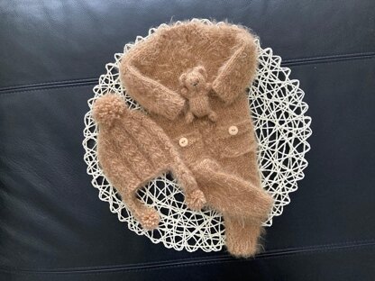 Fits both newborn and 21-22 inch reborn size knit romper set Pattern THIS IS NOT THE FINISHED ITEM This is a downloadable PDF pattern for the knitting of this Butterscotch 3 piece romper set in newborn/21-22 inch reborn size SIZE and NOT the actual finished items. Set includes romper, pompom earflap beanie and bear lovie. Bear lovie require some simple knowledge of crochet to complete This is a lovely stitch and a fun moderately easy project for you to create! Skill level: Intermediate to moderate Materials: DK Weight Yarn For the Romper I used Nako Paris in shade #11237 Size 4.5 mm (US 7) circular needle (16 inch length) or straight or dpns….I prefer circular 4.5mm crochet hook (heart lovie) Darning needle 4 Stitch Markers 5 buttons of choice small amount of stuffing and black yarn for bear lovie This is a wonderful gift to make in no time or to sell as a Photo prop. Copyrights protect this design from being reproduced in any media format to be resold.