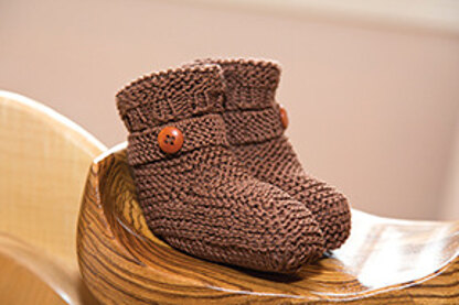These booties, worked back and forth from the top down, and adorned with decorative buttons are perfect for a special baby boy.