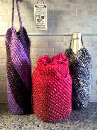 *Designed as a wine, champagne or other liquid bottle carrier, this seamless, mesh-like, stretchy bag will actually accommodate many different shapes. *