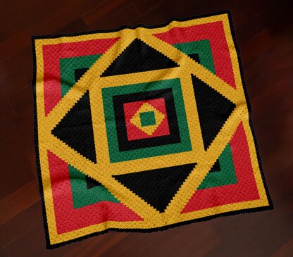 C2C CROCHET PATTERN Kaleidoscope Rasta Blanket Black Yellow Red Green Afghan