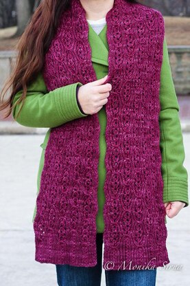 Gauge: Gauge is specified over one repeat of Cabernet Cable (picture included in the pattern).