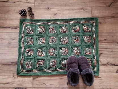 This Granny Square Cabin Rug is thick and feels lovely under your feet! It fits perfectly in front of a standard sized exterior door and can be customized to whichever colors you like as well as whatever size you need. Each granny square measures approximately 4" x 4" and you can use these measurements to determine your desired rug size (plus border). Simply add more squares to make it larger.