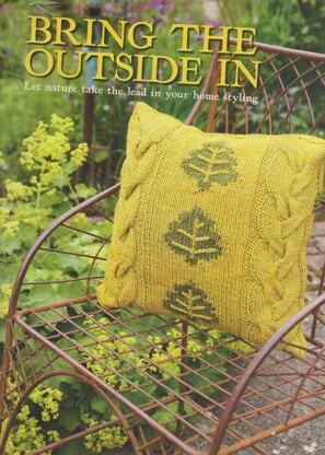 This is a pattern for a cable and leaf cushion cover, originally published in Knitting magazine. It has a stocking stitch back, cable panel and stocking stitch front with moss stitch borders. It has intarsia leaves on the front with embroidery. Photos Knitting magazine.