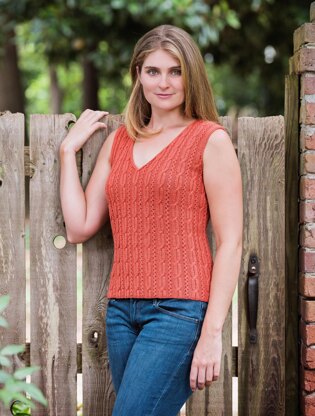 I love the slim cables, and how well the tiny openwork ribs set them off! The vest is worked in the round to the armholes, the neckband is worked along with the neck shaping, and the shoulders are joined with 3-Needle Bind-Off, so the only finishing is the armhole edging.