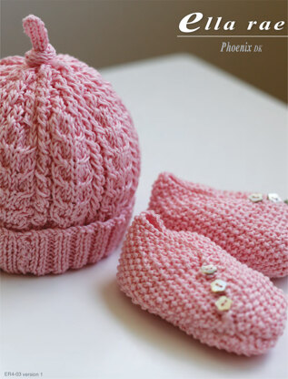 Cable Beanie and Booties in Ella Rae Phoenix DK - ER4-03 - Downloadable PDF is a Knitting pattern by Ella Rae, available as a Downloadable PDF and includes instructions in English. Super fun to make, this pattern could be your next masterpiece!