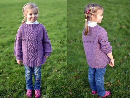 Cable Fantasy sweater is knitted top down seamlessly with raglan shaping. The oversized sweater design features round bottom edge, wide sleeves and fancy cable at front. The neck band, sleeves cuffs and bottom band are knitted with 2 x 2 ribbing.