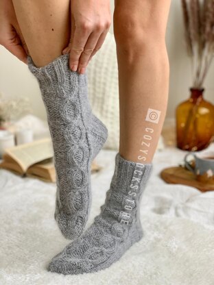 Pattern in English, US knitting terms Skills: knit, purl I used circular needles 80 cm long. But you can easily adapt it to set 4 Double Pointed Needles Pattern include with more yarn suggestions. You can use any yarn close to parameters The pattern includes step-by-step instructions, video tutorials for each step, and a cable pattern chart. The pattern includes three sizes. All sizes and the number of skeins are written in the table with measurements of calf, foot. Picture size S-M / Model size XS-S Easy to adjust foot length to fit your size. This pattern includes video demonstration of the pattern. There are no spoken words in the video, and the directions are all shown in captions.