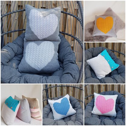 This pattern is based on my Cable Hearts carseat blanket and features the same asymmetrical heart on the front panel. There are two versions of the heart in the pattern - original and mirrored. This cushion cover is designed to fit 45cm square pad.