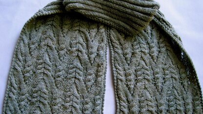 This is a pattern for a turtleneck scarf. that's made using a sport weight yarn. However, the turtleneck aspect of the scarf keeps you warm on even the coldest days. The cable lace sttich used in this scarf is both charted and written out line by line. There is also an optional crocheted edging (instructions for which are included in the pattern) line, and charted. The stitch itself causes a subtle, but very pretty scallop at the bottom of each of the panels. Skill Level (for scarf): Intermediate (assuming a basic knowledge of lace knitting) Skill Level for Edging: Intermediate (assuming a basic knowledge of Single Crochet_ The yarn used in the sample is Lorna's Laces Shepherd Sport.