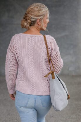 The Cable Mesh Sweater enjoys a loose silhouette for an easy fit and with subtle shaping where it matters. It's surprisingly easy to find your rhythm with these stitch patterns, so don't let the details fool you. It has enough texture to keep you interested, but won't keep you glued to charts and instructions.