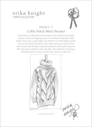 Cable Stitch Maxi Sweater in Erika Knight Maxi Wool is a Intermediate Knitting pattern by Erika Knight, available as a Leaflet and includes instructions in English. Super fun to make, this pattern could be your next masterpiece!
