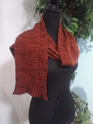 Cable Twist Scarf uses the same cable motif as Cable Twist Hat, repeated along one edge of the scarf. This is a clean, elegant look that can be worn by anyone, with or without the matching hat.