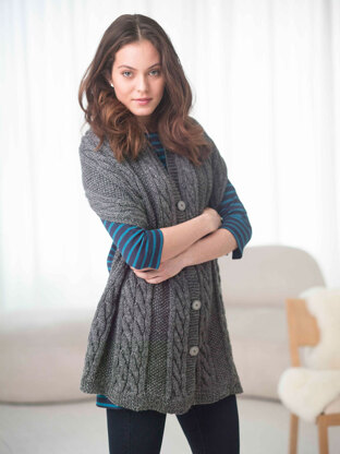 Cabled And Buttoned Wrap in Lion Brand Heartland - L40122