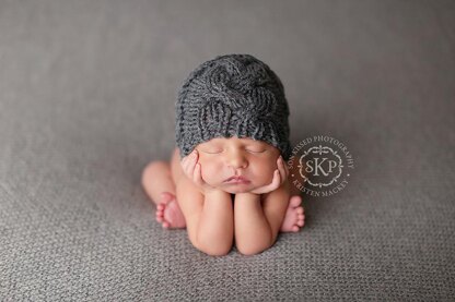If you know the knitting basics (cast on, bind off, working in the round, cables, decreasing), you can make this cute Hat for your baby, your photo sessions, or as a wonderful gift. All you need is an hour of your time, knitting needles and medium weight yarn of your choice.