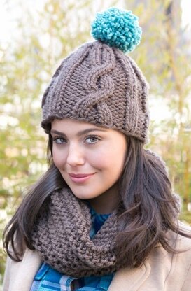 Cabled Hat with Matching Cowl in Red Heart Lisa Big - LW3669EN