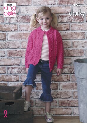 Cabled Sweater and Cardigan in King Cole Comfort Chunky - 4972 - Downloadable PDF is a Advanced Knitting pattern by King Cole, available as a Downloadable PDF and includes instructions in English. Super fun to make, this pattern could be your next masterpiece!