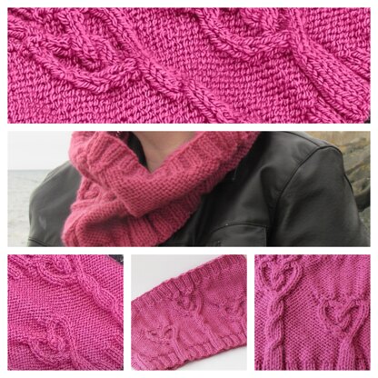 This product is the knitting pattern only to make your own Cabled Twisted Hearts Cowl.