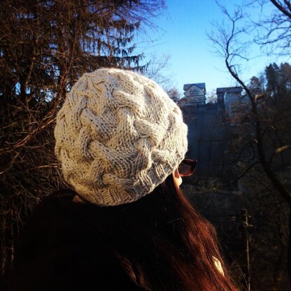 A simple braided cable pattern makes this hat a real eye-catcher. Chunky cables all around for a stylish warmth.