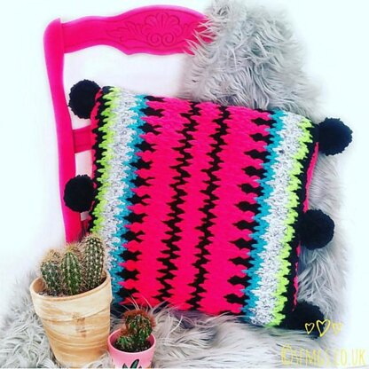 Instant pdf download crochet pattern to give your home instant good vibes and festival feels with a fun geometric, and modern boho-chic 'Cabo Boho' spike throw pillow!