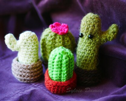 Crochet pattern to make 2 types of Cactus in a pot: