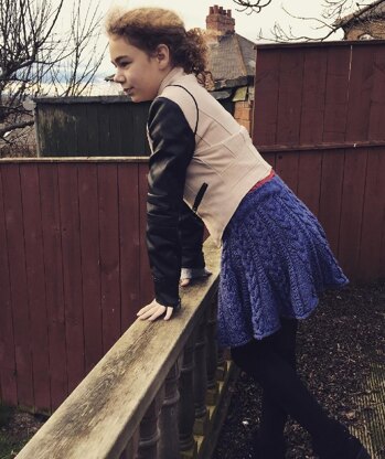 This is the pattern to make the Caitlin Cabled Skater Skirt. It is very flared at the bottom and more fitted at the waist. It creates a very satisfying swing when the wearer moves. This style of skirt is very fashionable and is ideal for older girls and teenagers as well as adult ladies.