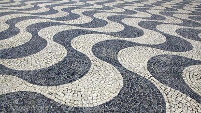 Everyone who has been in Portugal knows them: the Calçada Portuguese. The patterned mosaic pavements are still being laid today following a tradition that has been practised for centuries. This way of paving has rightly been added to the list of UNESCO World Heritage Sites. I converted three of the most famous designs into knitting patterns for cushion covers. First, the widely used Mar Lago, resembling waves. Plus, a graphic weave pattern of the Praça dos Restaurodores in the city centre of Lisbon and a floral pattern that can be found surrounding the monument in front of the station Cais do Sodre. Mercerised cotton in the two colours of the pavement granite and beige is a great choice to imitate the Calçada because the pavement also reflects the sunlight and glistens in the rain. I knitted two square and one rectangular sofa cushions. The pattern repeats can easily be used for any cushion size.