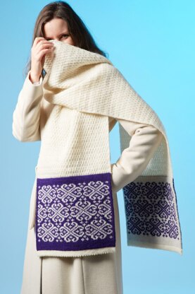 - Waste yarn The sample was knit in Jamieson & Smith 2 Ply Jumper Weight with 20 balls of Shade 01 A (natural white) and 3 balls of Shade 20 (violet).