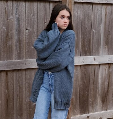 This comfy cardi is meant to be oversized with about 10” positive ease. If made in the size given, the cardigan will fit loosely. But if you want a very oversized look, then size up. The model is wearing a medium size, and she fits a size small.