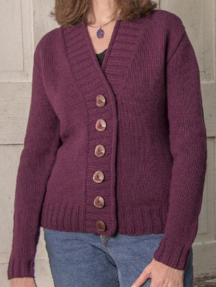 This cardigan is worked from the top down, beginning at the back shoulders. The back is worked to the armholes, then placed on hold while the fronts are picked up from the back shoulders and worked to the armholes. Then the back and fronts are joined and the body is worked to the bottom edge. The sleeves are picked up from the armholes and worked to the cuffs, with short-row shaping to shape the sleeve caps.