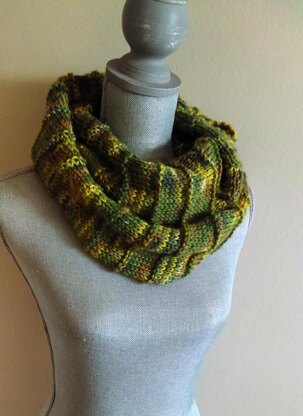 This beautiful camo infinity scarf can be worn several ways. It is featured in a lovely, soft, rich, wool/acrylic camo yarn. The gauge does not have to be exact for this pattern- many similar yarns can be used. One Size. 59" circum x 11" wide. Skill Level: Easy. Yarn Weight: Medium Worsted. Knitting Needles: US 9