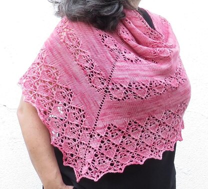 It was the obvious name for the pattern, as the base stitch for this shawl is the translation of the word apple into knitting by designer Naomi Parkhurst.