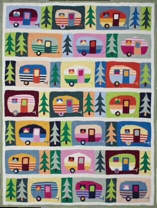There are two blocks: Camper and Tree. There are four different shapes for the camper top to give variety to the design, and different several striping alternatives. Written instructions are provided for all pieces and there are charts for all but one (simple) shape. There are 13 figures to illustrate the construction. There is a help/tutorial video for all but the most simple steps, including: the entire Tree, and Camper: door, background pieces, window, tire and hitch. There is a link on the first page of the pattern to a webpage with these videos and all general technique videos applicable to this pattern.