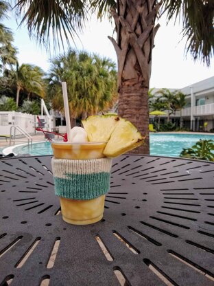 The Camper Cup Sleeve is knit entirely in Double-Knit Stitch to create a well-insulated cup cozy. The Double-Knit Stitch essentially creates 2 layers of stockinette with only the knit sides visible. Double-knitting in the round is an advanced technique because the tension of your knit and purl stitches need to be the same. Please read through the entire pattern before starting your project. This pattern has been test knit and tech edited.