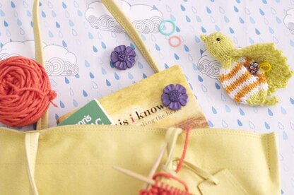 A palm sized pouch shaped like a small bird. Made in one piece from beak to tail, this pattern doesn’t require any seaming. It can hold all your favorite little things, from stitch markers to candy. This pattern is written in English and Japanese both.