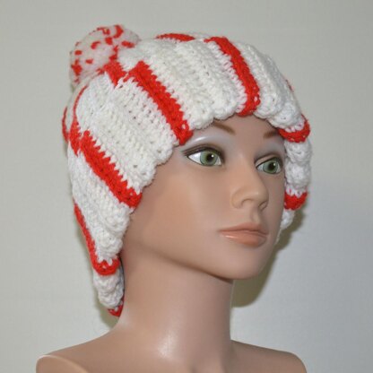 Pattern calls for worsted-weight yarn, 8 oz. white and 4 oz. red; quantity is for both hat and matching scarf.